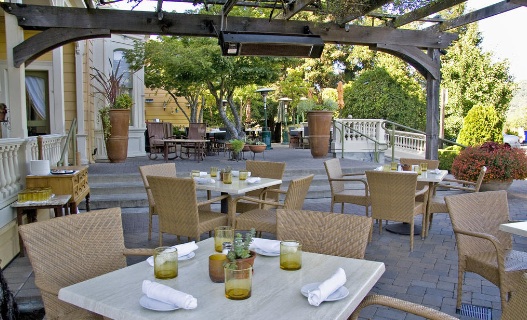 But what Lady Gaga may not realize is that Girl & the Fig has a sister cafe called Estate, in the home General Vallejo gave to his daughter. Fruit trees punctuate well-manicured lawns and the garden is a sensual place for Sunday brunch, dining under a canopy of vines in the warmth of a wine country sun.
