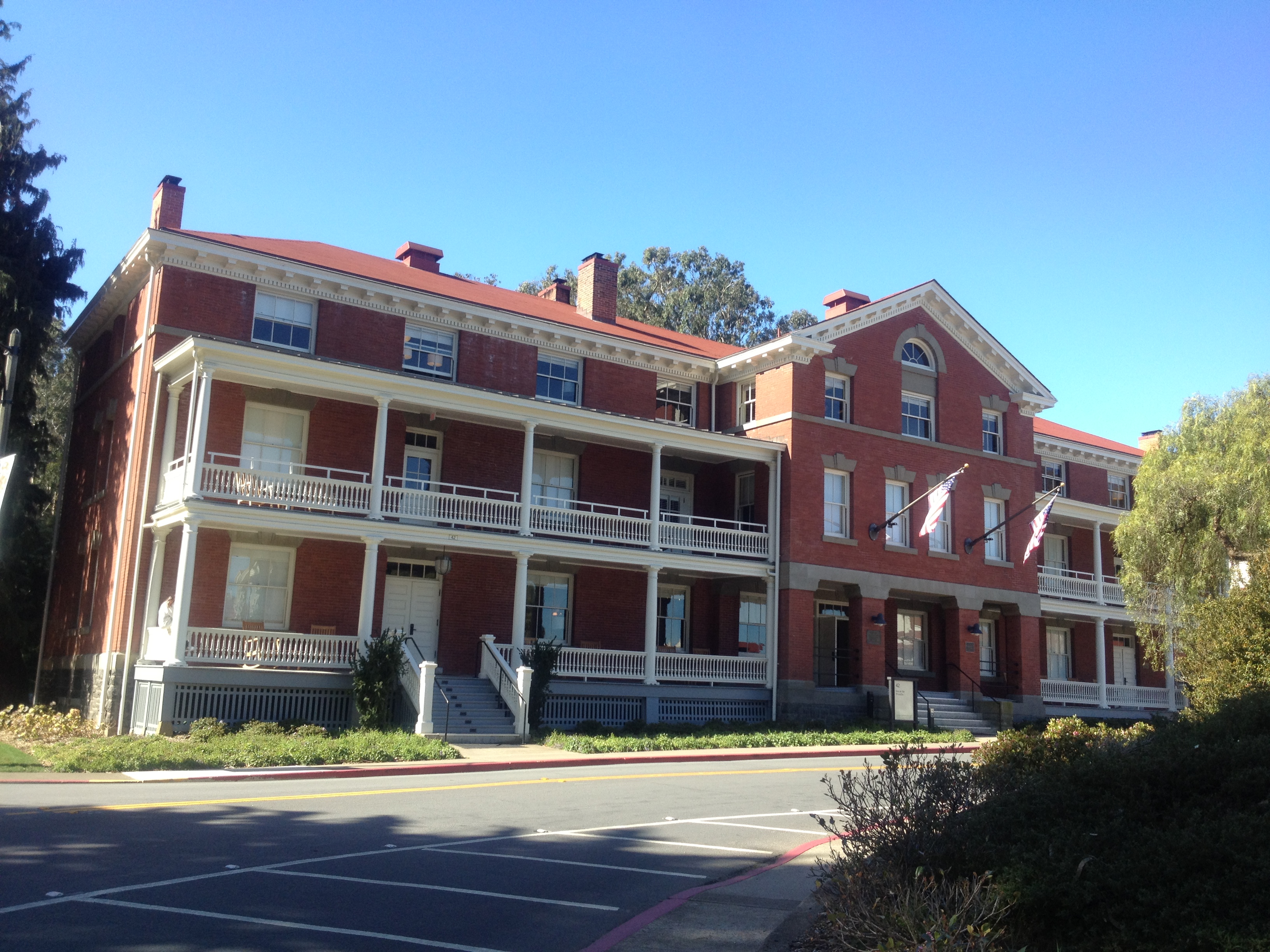 The most prominent buildings are the redbrick Colonial Revivals that line two sides of the green belt (the old Parade Grounds) in the Main Post. The Inn at the Presidio was once the Bachelor Officers’ Quarters and you can feel the elegance of the bygone era the minute you roll in your suitcase. Yet, the property also has a very down-home feel, with free Wi-Fi and bike rentals, access to the Presidio gym and pool (now run by the YMCA) and free breakfast and evening managers’ receptions.