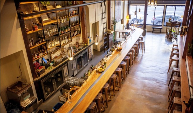 The Copper Spoon’s bar area is seen from above. The new Oakland restaurant is on the site of the former Art’s Crab Shack, the iconic diner that served patrons for decades. – Courtesy Copper Spoon