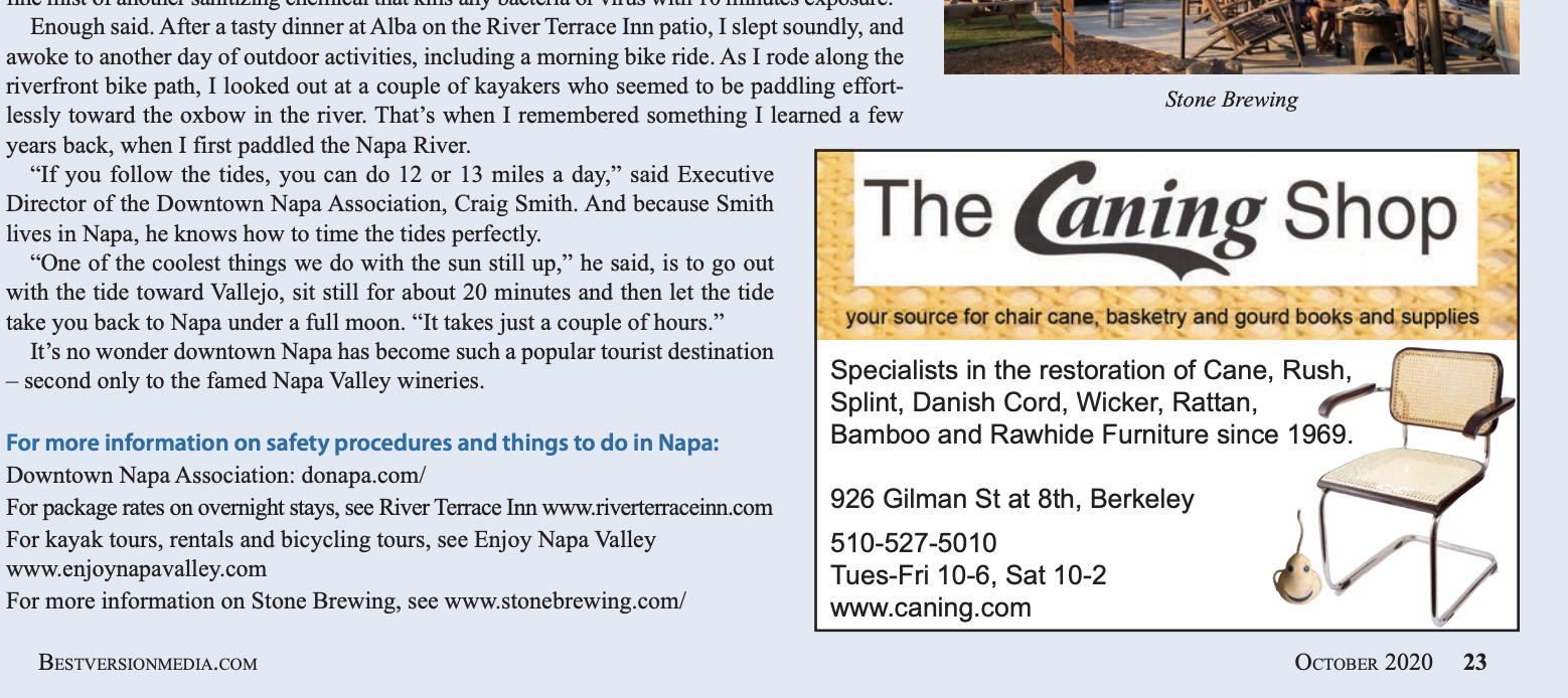 Sojourns: Napa by Kayak Posted on October 22, 2020 by Ginny Prior MONTCLAIR, PIEDMONT AND BERKELEY LIVING MAGAZINES: SEPT. 2020 Share this:Share Click to share on X (Opens in new window) X Click to share on LinkedIn (Opens in new window) LinkedIn Click to share on Facebook (Opens in new window) Facebook Like Loading... Related