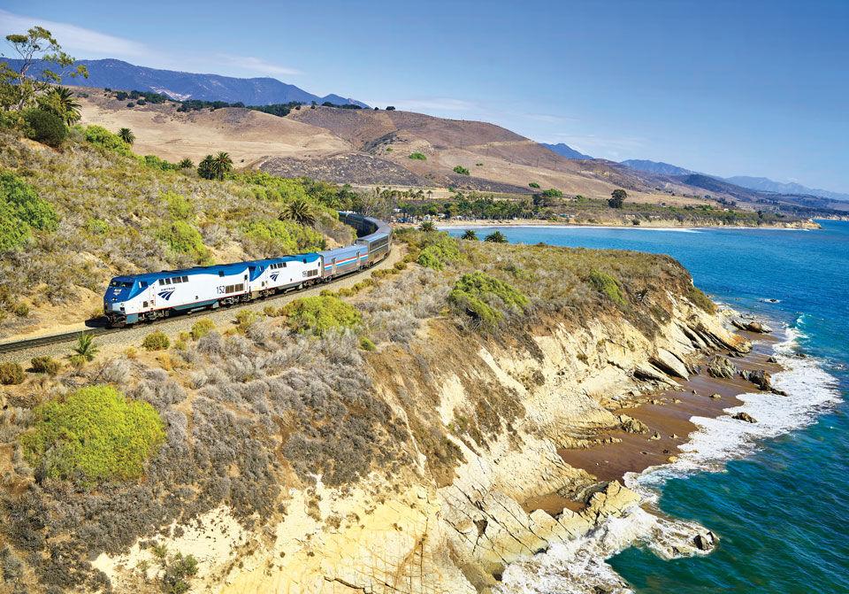 The southern route between Oakland and Los Angeles traverses the Salinas Valley lettuce fields and the wine region of Paso Robles. South of San Luis Obispo, the famed Pismo Beach dunes play peekaboo with the Pacific Ocean, which comes into full view near Vandenberg Space Force Base. Between Santa Barbara and Oxnard, there are sections of track so close to the water you can almost feel the spray.
