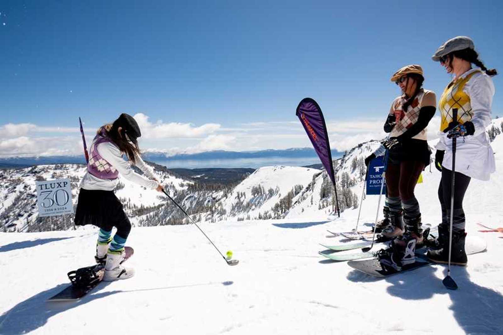 Alpine’s snow golf tournament is 10 holes of wet and wild fun.(Courtesy of Palisades Tahoe)