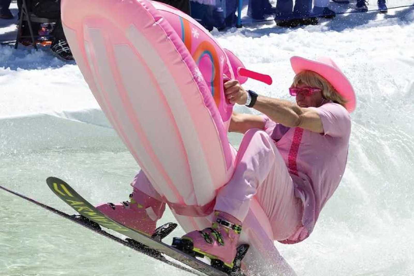 Mammoth lives up to its name with its pond skimming, too. Its 100-plus-foot pond at the Canyon Lodge sets up a wild competition on April 19th. It turns out size does matter when it comes to crossing a freezing cold chop in a swimsuit. You’ll find the mountain mascot, Woolly, is more appropriately dressed, though, as he photo-bombs across the mountain in his full-length fur bodysuit.